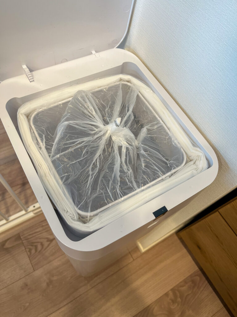 ゴミ箱の底までピタッと真空に近い状態で張り付くようにセットされるので、手で広げるよりもずっと多くのゴミが入る仕組みになっているのです。