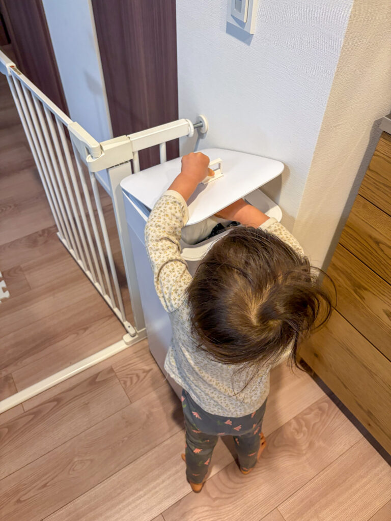 うちの2歳の双子たちも手で開けて自分でゴミを捨てています!