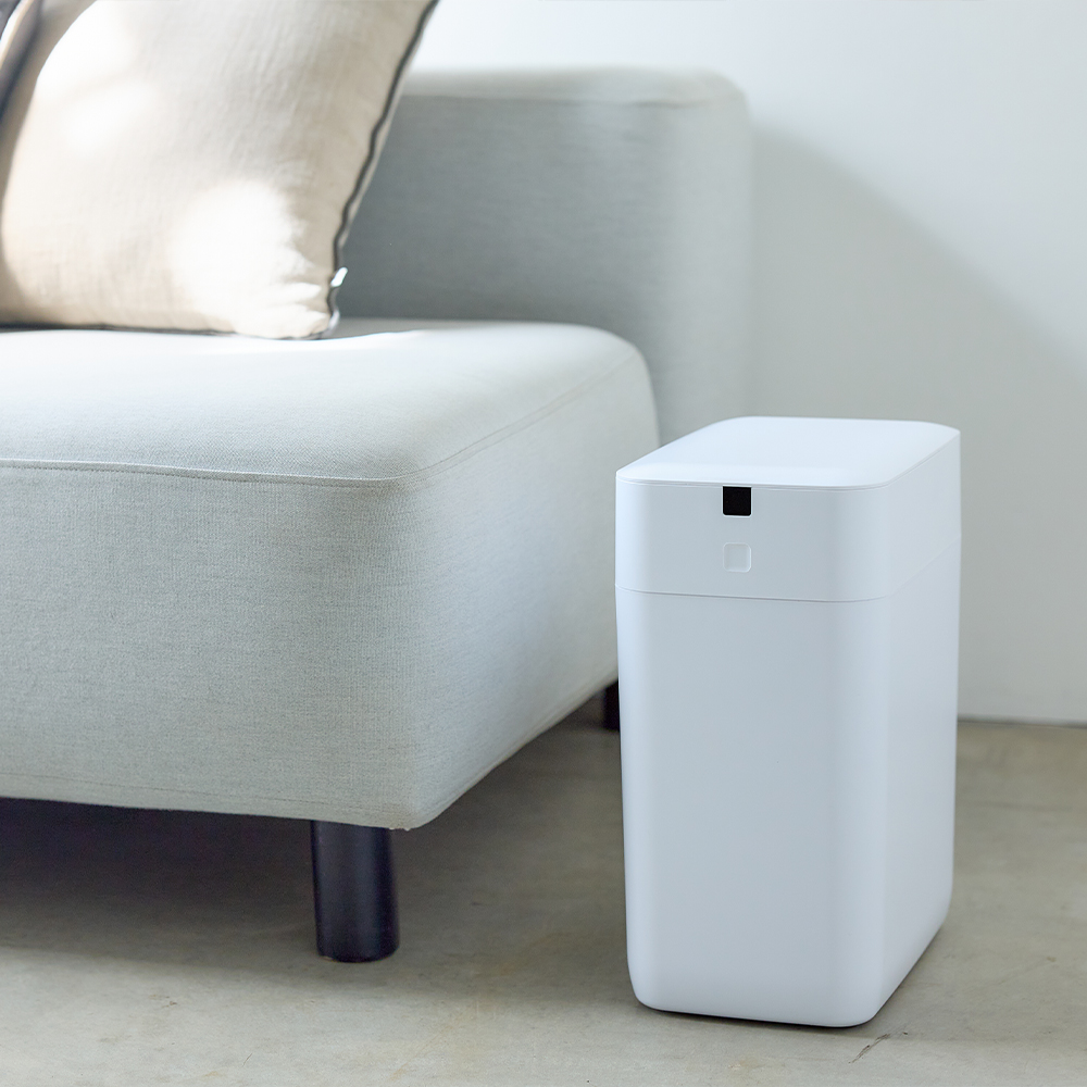 マットな質感で、清潔感のあるホワイト。「ゴミ箱感」がないので、リビングの特等席に置いても全然OK。
